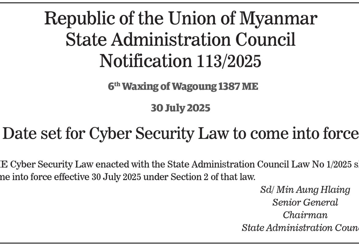 Date set for Cyber Security Law to come into force
