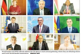 VA C C I N E s h a r i n g , strengthening the WHO and adopting a pandemic treaty were among proposals from world leaders Monday on how to halt the Covid-19 pandemic and prevent future health catastrophes.