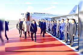 Acting President and SSPC Chairman of the Republic of the Union of Myanmar Senior General Min Aung Hlaing and party arrive in Russia to attend World Atomic Week Forum 2025