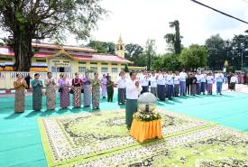 Acting President of the Republic of the Union of Myanmar and SSPC Chairman Senior General Min Aung Hlaing and his wife Daw Kyu Kyu Hla visit Shwehsandaw Pagoda, Strand Road in Pyay