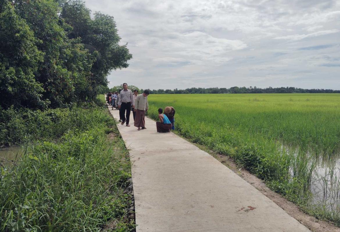Officials Inspect Concrete Road Construction in Dedaye Township