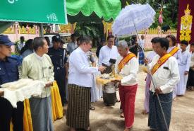 Acting President of the Republic of the Union of Myanmar and SSPC Chairman Senior General Min Aung Hlaing and his wife Daw Kyu Kyu Hla visit Shwehsandaw Pagoda, Strand Road in Pyay