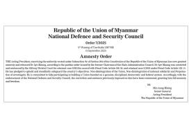 The National Defense and Security Council of the Republic of the Union of Myanmar has issued Order No. (7/2025) dated September 11, 2025 (Amnesty Order, Dr. Aye Maung)