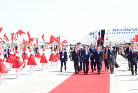 Myanmar’s high-level delegation, led by Acting President and SSPC Chairman Senior General Min Aung Hlaing, arrives in China