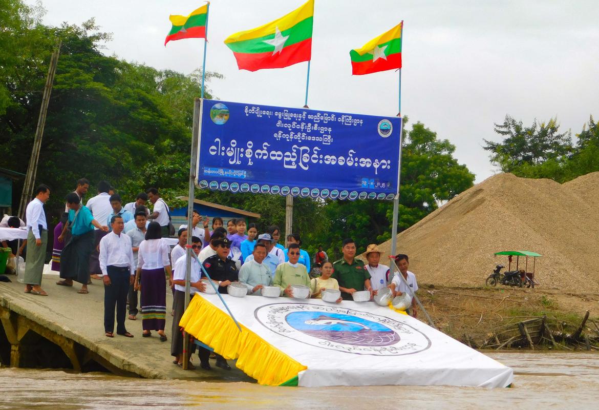 Fish stocking ceremony held in natural lake (Hlaing River)
