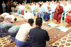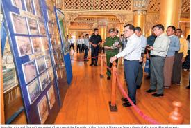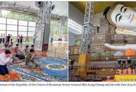 Acting President of the Republic of the Union of Myanmar and SSPC Chairman Senior General Min Aung Hlaing and his wife Daw Kyu Kyu Hla visit Shwehsandaw Pagoda, Strand Road in Pyay
