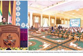 Acting President of the Republic of the Union of Myanmar and SSPC Chairman Senior General Min Aung Hlaing and his wife Daw Kyu Kyu Hla visit Shwehsandaw Pagoda, Strand Road in Pyay