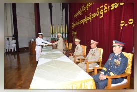 Acting President of the Republic of the Union of Myanmar and SSPC Chairman Senior General Min Aung Hlaing and his wife Daw Kyu Kyu Hla visit Shwehsandaw Pagoda, Strand Road in Pyay