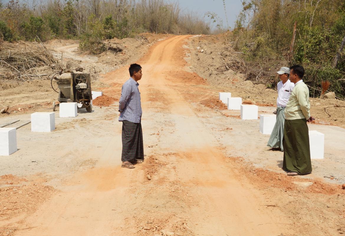 Officials from the Department of Rural Development led by Assistant Director U Soe Than looked into progress for construction of a rural road in Metlinchaung Village, Katha Township in Sagaing Region on 18 March.