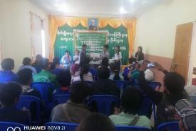 An informative talk about crime reduction was held on Yangon-Mawlmyine Road, near Myoma market in the town of Waw, Bago Region this morning.