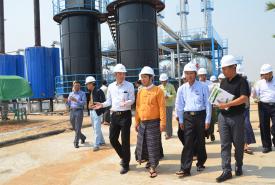 Acting Chief Minister of Mandalay Region U Zarni Aung and Deputy Minister for Electricity and Energy Dr Tun Naing inspected the test run of a mini oil refinery of MCCM Co, Ltd near Kyawzi village, Taungtha Township in Mandalay Region yesterday morning.