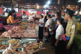 Government personnel led by health staff from rural health center raised awareness about coronavirus at Myoma market in the town of Phaya Thonesu this morning.