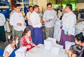 Deputy Minister for Information U Aung Hla Tun visited private owned printing houses, which are producing school text books under tender system, in Mandalay yesterday.