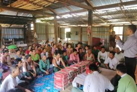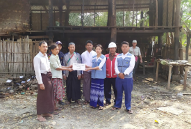 Paungde Township Rural Development Department organized a ceremony to donate 40 sets of solar lamps to local residents at a monastery in the village of Shwe Mya Gwin in Paungde township, Bago region this morning.