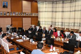 Union Minister for Information Dr Pe Myint met with a Nepalese media delegation led by Mr Kishor Shrestha, Chairman of the Press Council of Nepal at his office in Nay Pyi Taw yesterday.