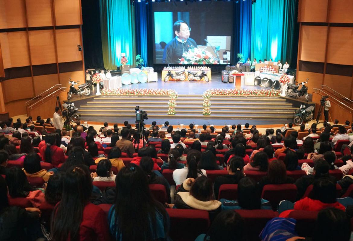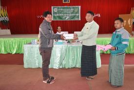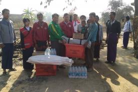 Fire victims caused by forest fire in Ooshitkhin village in Kyaukgyi Township, Taungoo District, Bago Region were provided with relief items by Township Red Cross Society this morning.