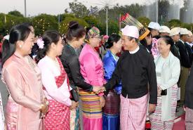 President U Win Myint and First Lady Daw Cho Cho hosted a reception and dinner to commemorate the 73rd Anniversary Union Day in the square of Nay Pyi Taw City Hall yesterday.