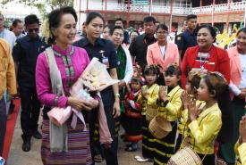 State Counsellor talks with school children in Taunggyi