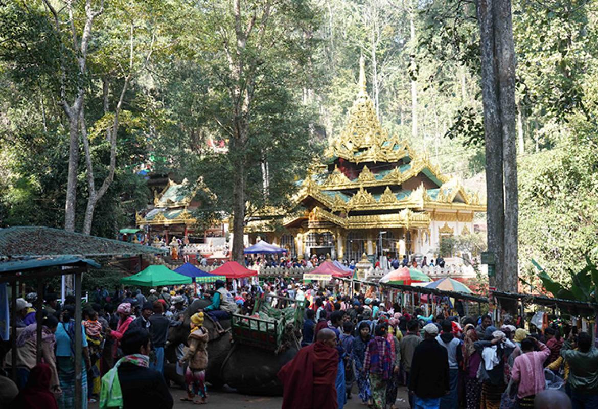 Pilgrims thronged the Alaungdaw Kathapa cave shrine at the Alaungdaw Kathapa National Park in Kani Township of Sagaing Region for the Tabodwe Festival.