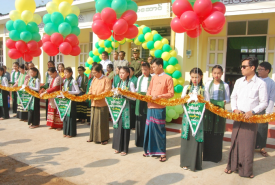 A ceremony to inaugurate a new school facility and hand over it to the Department of Education was held at the Nawaday hall of B.E.H.S-1 in the town of Thaton, Mon State this morning.