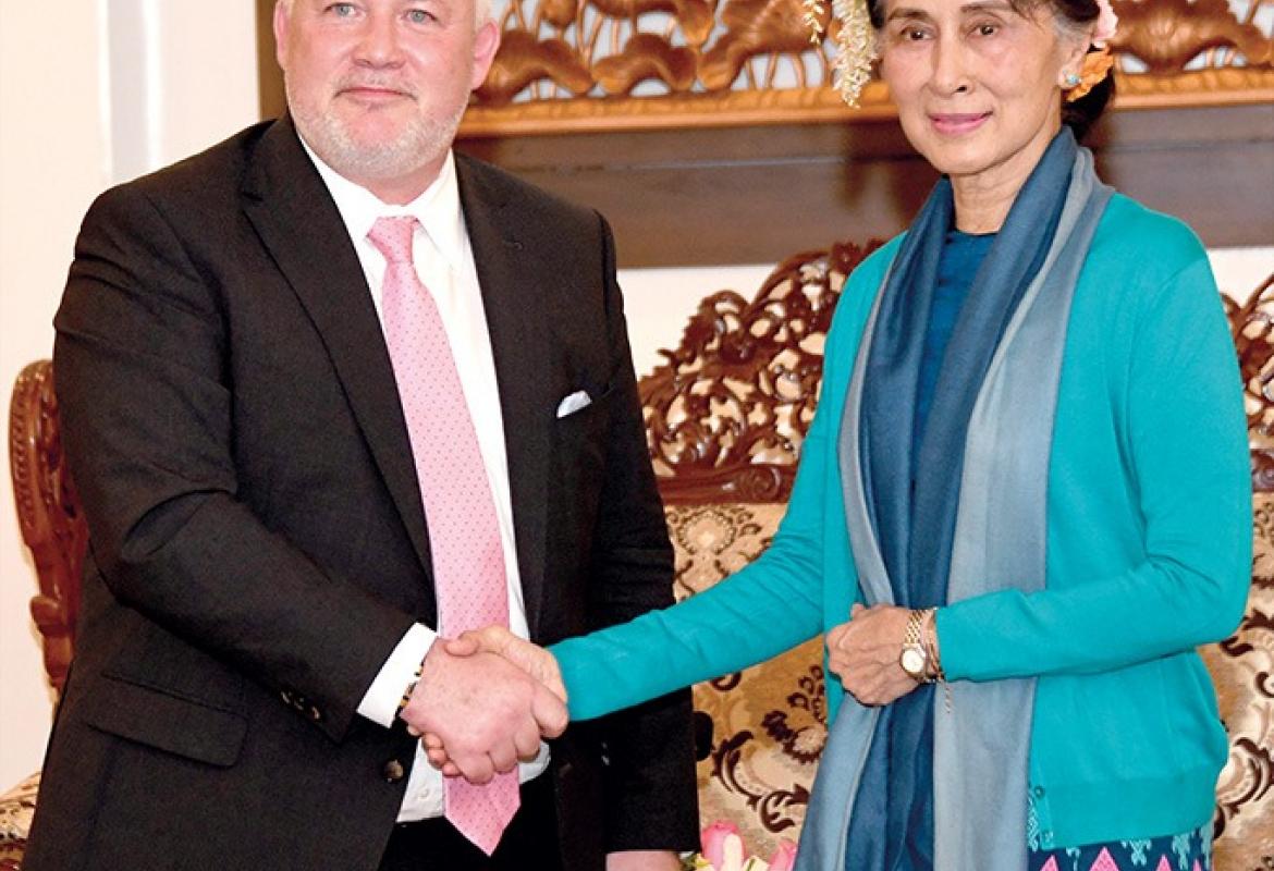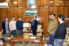 Kachin State Chief Minister Dr. Khat Aung received Chairman of Myanmar Red Cross Society Dr. Maung Maung Myint and party at the office of State Government yesterday.