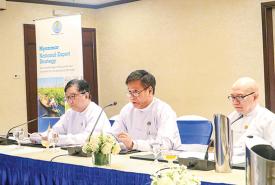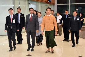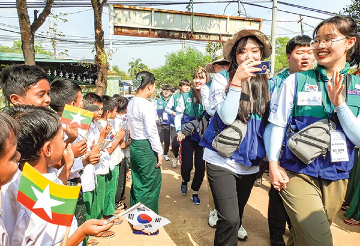 The youths of the Korean Red Cross accompanied by volunteers from Myanmar Red Cross Society met with the students of Kyaik Inn Basic Education Post-primary School at the school in Thanlyin Township, Yangon Region yesterday.