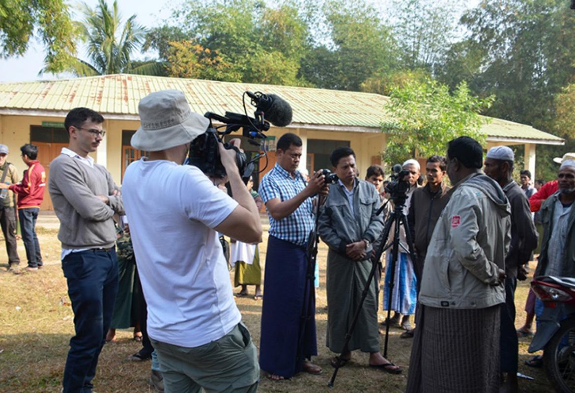 A group of local and foreign journalists visited Nyaung Chaung Village and Pa Din Village in Maungtaw Township, and interviewed the villagers of the two villages yesterday.