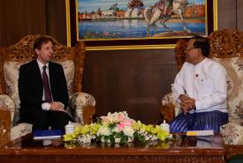 U Kyaw Tin, Union Minister for International Cooperation of the Republic of the Union of Myanmar received Mr. Igor Driesmans, Ambassador of the European Union to ASEAN in Jakarta on 31 January 2020 at 9:30 a.m. at the Ministry of Foreign Affairs in Nay Pyi Taw.