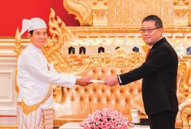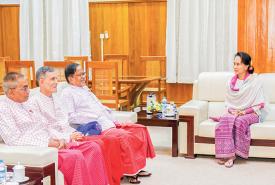 State Counsellor Daw Aung San Suu Kyi, in her capacity as Chairperson of the National Reconciliation and Peace Center, received a delegation from New Mon State Party led by its Chairman Nai Han Thar at the NRPC in Nay Pyi Taw yesterday morning.