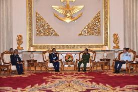 Commander-in-Chief of Defence Services Senior General Min Aung Hlaing received Air Chief Marshal Manat Wongwat, Commander-in-Chief of Royal Thai Air Force, at the Zeya Thiri Beikman in Nay Pyi Taw yesterday.