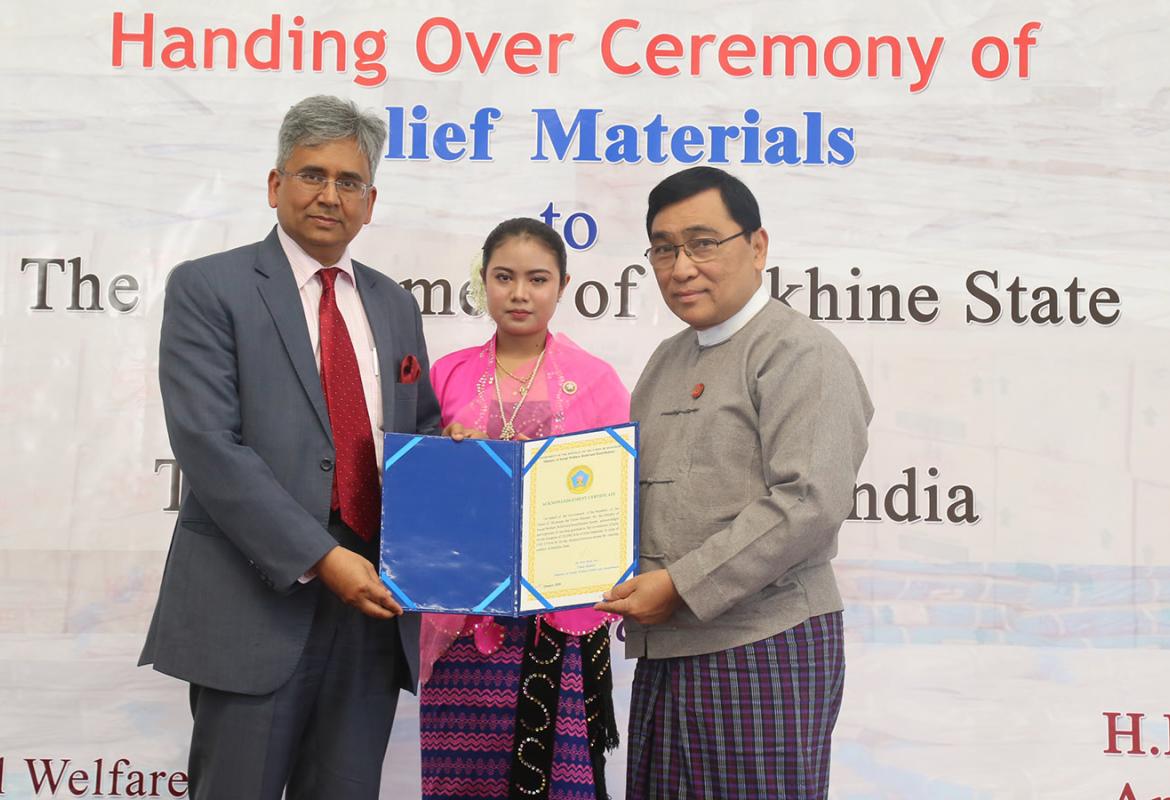 Rakhine IDPs receive 20,000 relief aid bags from India