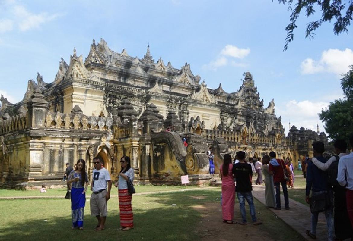 With its rich ancient architecture, Me Nu Oak Kyaug (brick monastery), also known as Maha Aung Myae Bon Zan, is attracting crowds of tourists and locals on weekends and holidays.