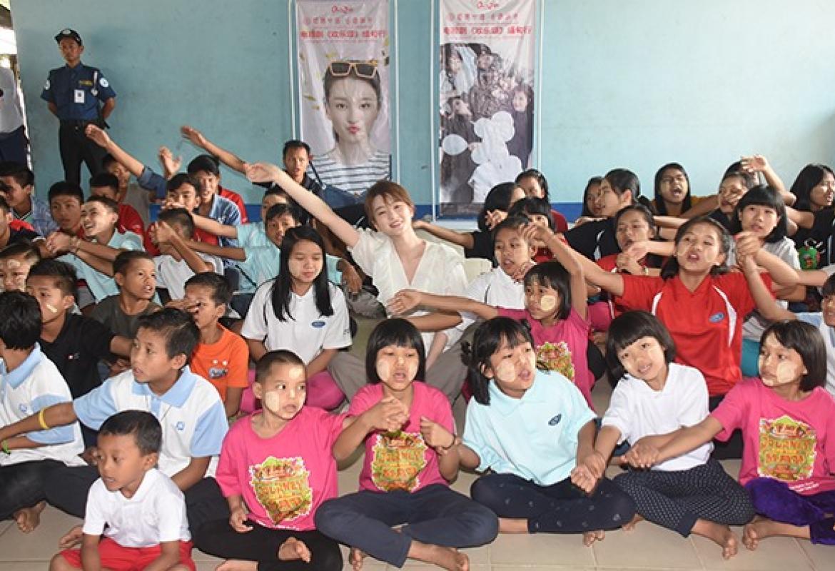 Qiao Xin, the main actress of the Chinese drama series ‘Ode to Joy’, and crew made donations to the Andrew Youth Orphanage in Gontalapaung Village, Mingaladon Township, yesterday morning.