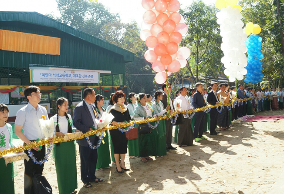 A ceremony to open a new sports hall, donated by Korea’s Seok Sung Scholarship Foundation, was held at B.E.H.S-3 in Thanlyin, southern district, Yangon Region yesterday.