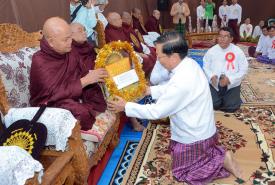 Chief Minister of Bago Region U Win Thein and wife donated cash to the prsiding Sayadaw of Wailuwun Monastery and committee members for construction of a religious edifice being built in Monhla Township on 29 December.