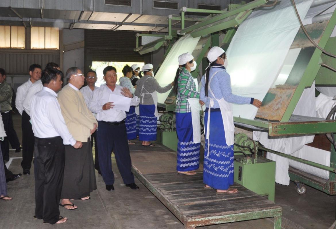 Union Minister for Planning, Finance and Industry U Soe Win inspected the No.1 Textile Factory in Shwedaung Township, Bago Region, on 9 December morning.