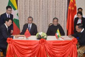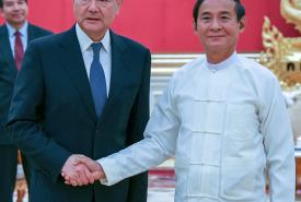 President U Win Myint received a delegation from the People’s Republic of China led by State Councilor and Minister of Foreign Affairs of PRC Mr. Wang Yi at the Credentials Hall of the Presidential Palace in Nay Pyi Taw at 4.30 pm yesterday.