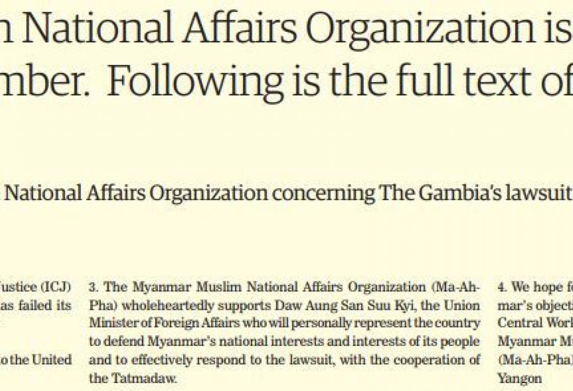 Myanmar Muslim National Affairs Organization issued a statement dated 28 November. Following is the full text of the statement.