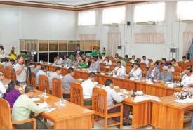 A ceremony to hand over funds of Emerald Green Project to respective officials in villages in Pinlebu Township, Katha District, Sagaing Region was held at the Township Department of Rural Development this morning.