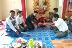 A ceremony to donate cash assistance for purchasing construction materials for a damaged monastery was held in Thayargon Village in Letpadan Township, Bago Region this morning.