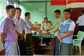 Victims of strong winds were provided with financial aids at the meeting hall of the township General Administration Department in Minhla Township, Bago region yesterday afternoon.