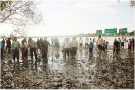 Sapling growing campaign launched in the mangrove forest in the village of Pyinphyumaw in Kyaukphyu township this morning, with the attendance of Rakhine State Minister for Agriculture---------