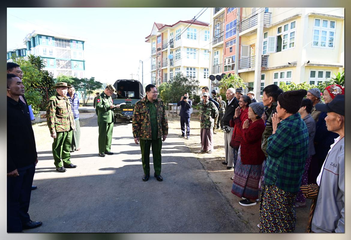 SSPC Chair & Defence Services C-in-C Senior General Min Aung Hlaing reviews construction of War Veterans’ Housing in PyinOoLwin