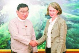 UNION Minister for Social Welfare, Relief and Resettlement (SWRR) Dr Win Myat Aye received Ambassador of Australia to Myanmar Ms Andrea Faulkner at minister office May Kha Lar hall in Nay Pyi Taw yesterday morning.