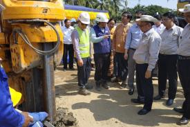 Union Minister for Construction U Han Zaw and Korea Ambassador to Myanmar inspected the construction site of Korea-Myanmar Friendship Bridge (Dala) yesterday morning.