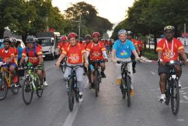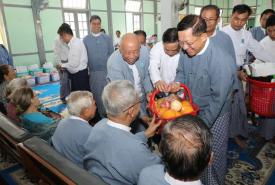 The alumni of 1965 to 1985 at the Basic Education High School No.1 Latha, formally Central High School, paid respect to their teachers at the Baho Sanpya Hall of the school in Latha Township, Yangon yesterday.