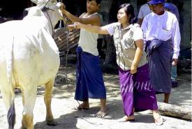 A team led by Assistant Director Dr. Thant Zaw Htwe from Pwint phyu Township Livestock Breeding and Veterinary Department injected cattle with vaccination against foot-and-mouth disease in Lel Hla Gone village in Pwint Phyu Township, Magway region yesterday morning.
