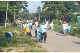 A group of people carried out a weekly collective garbage clearance campaign along Thakhin Pho Hla Kyi Road in South Okkalapa Township, eastern district, Yangon Region this morning with the aim of beautifying the whole township and keeping it clean.