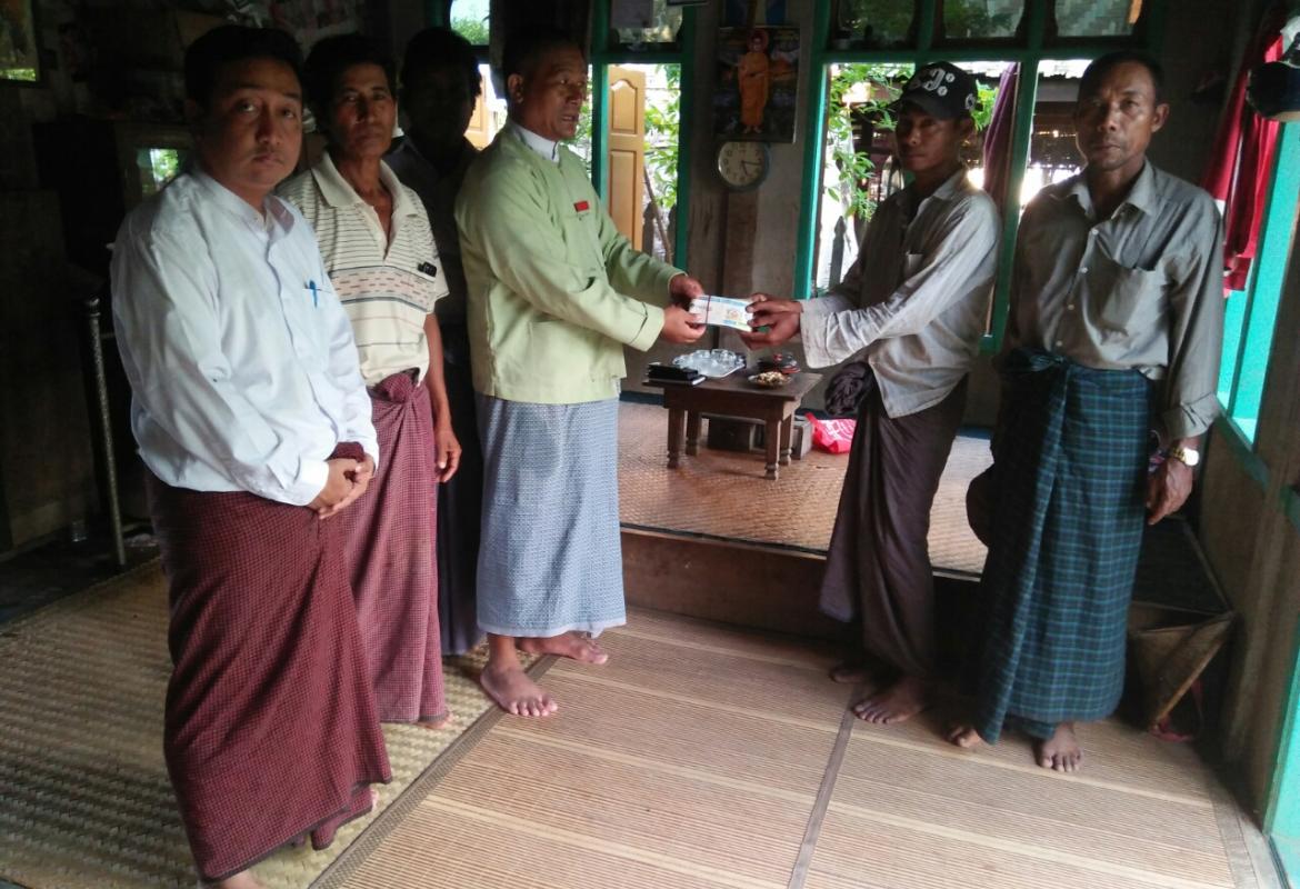 Department of Disaster Management provided the family of Maung Sai Min Tun, 27, who was struck to death by lightning in Kote Village in Satkyat village tract, Htigyaing Township, Sagaing Region yesterday.