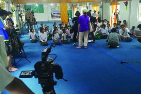 A 42-member film crew from South Korea’s SBS Plus filmed young children learning music in Taw Taik Dhamma Yeik Thar monastic school in Mingaladon Township, Yangon, yesterday as part of their Music Documentary Program.